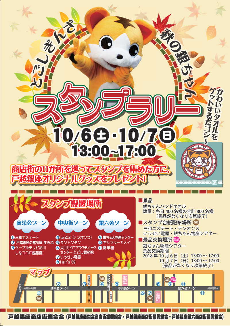 平成30年10月6日(土曜日)・10月7日(日曜日)戸越銀座 秋の銀ちゃんスタンプラリー 開催!