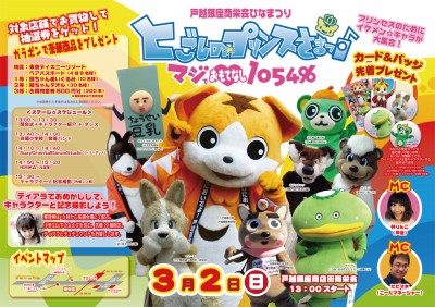 3月1日(日)に、戸越銀座商店街商栄会にて「第3回戸越銀座市場」を開催。 銀次郎と仲間達も遊びにきます。 1日限りの物産展です。是非この機会に戸越銀座商店街にお越し下さい。