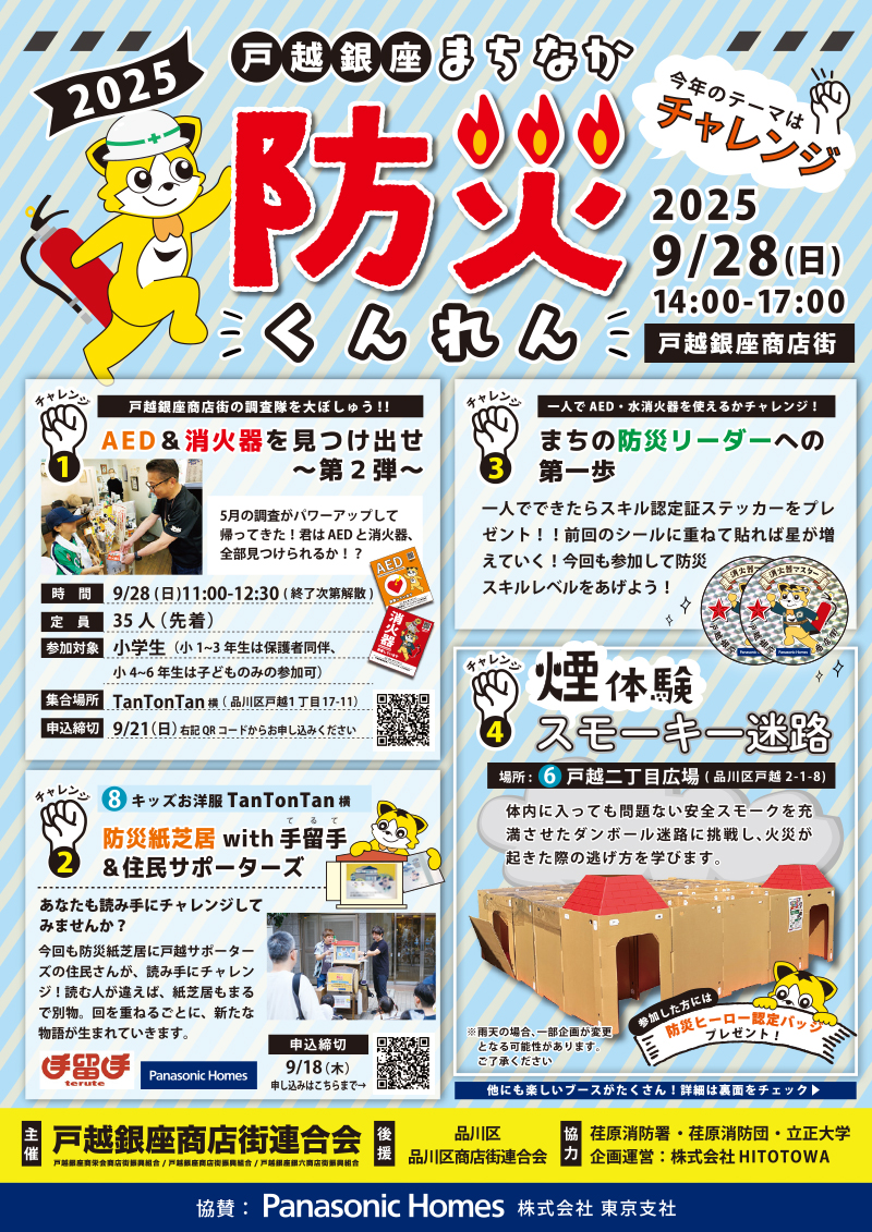 令和7年9月28日(日)14:00~17:00 戸越銀座まちなか防災くんれん開催!