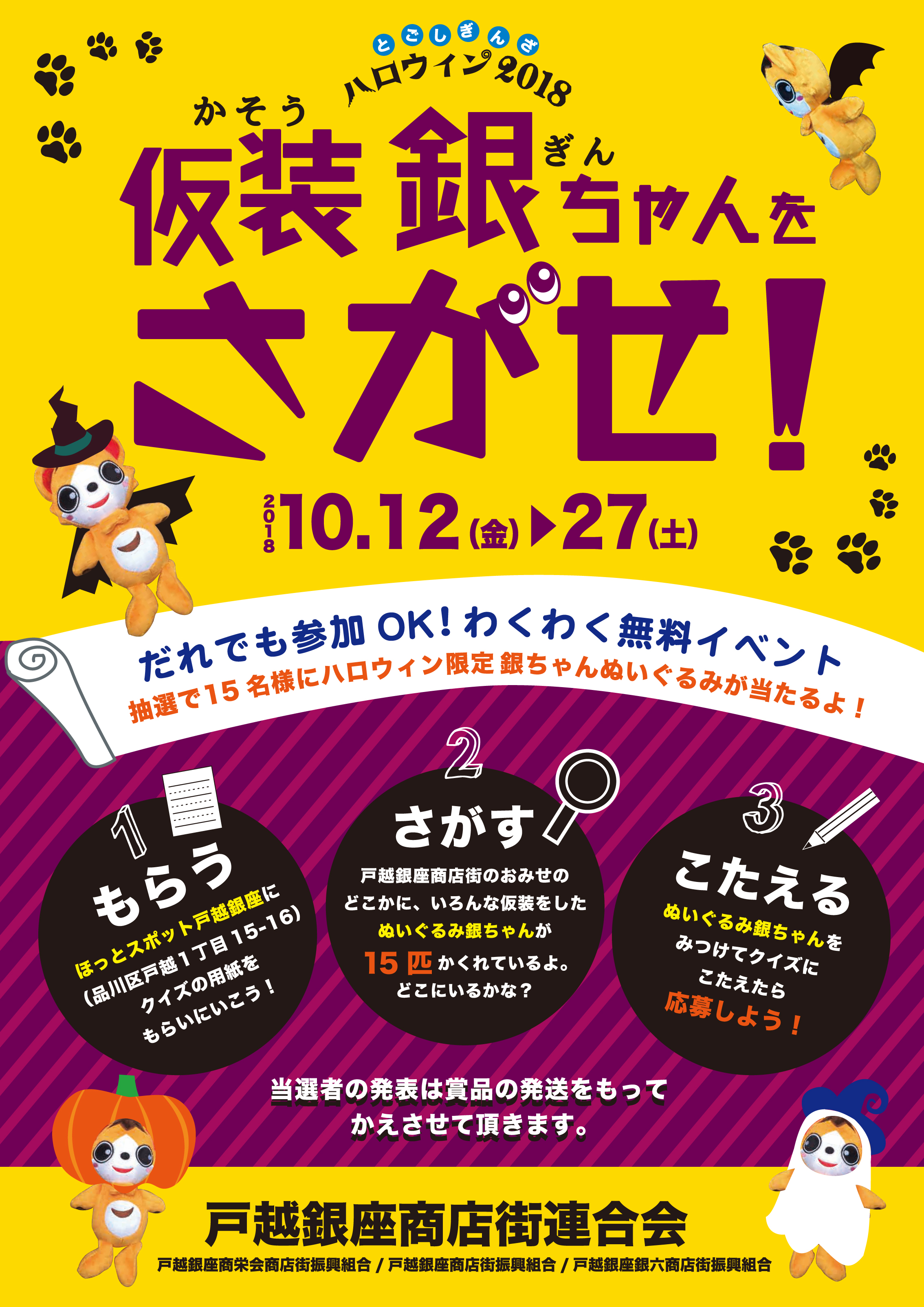 10/12(金曜日)~10/27(土曜日)、「仮装銀ちゃんをさがせ」を開催します。