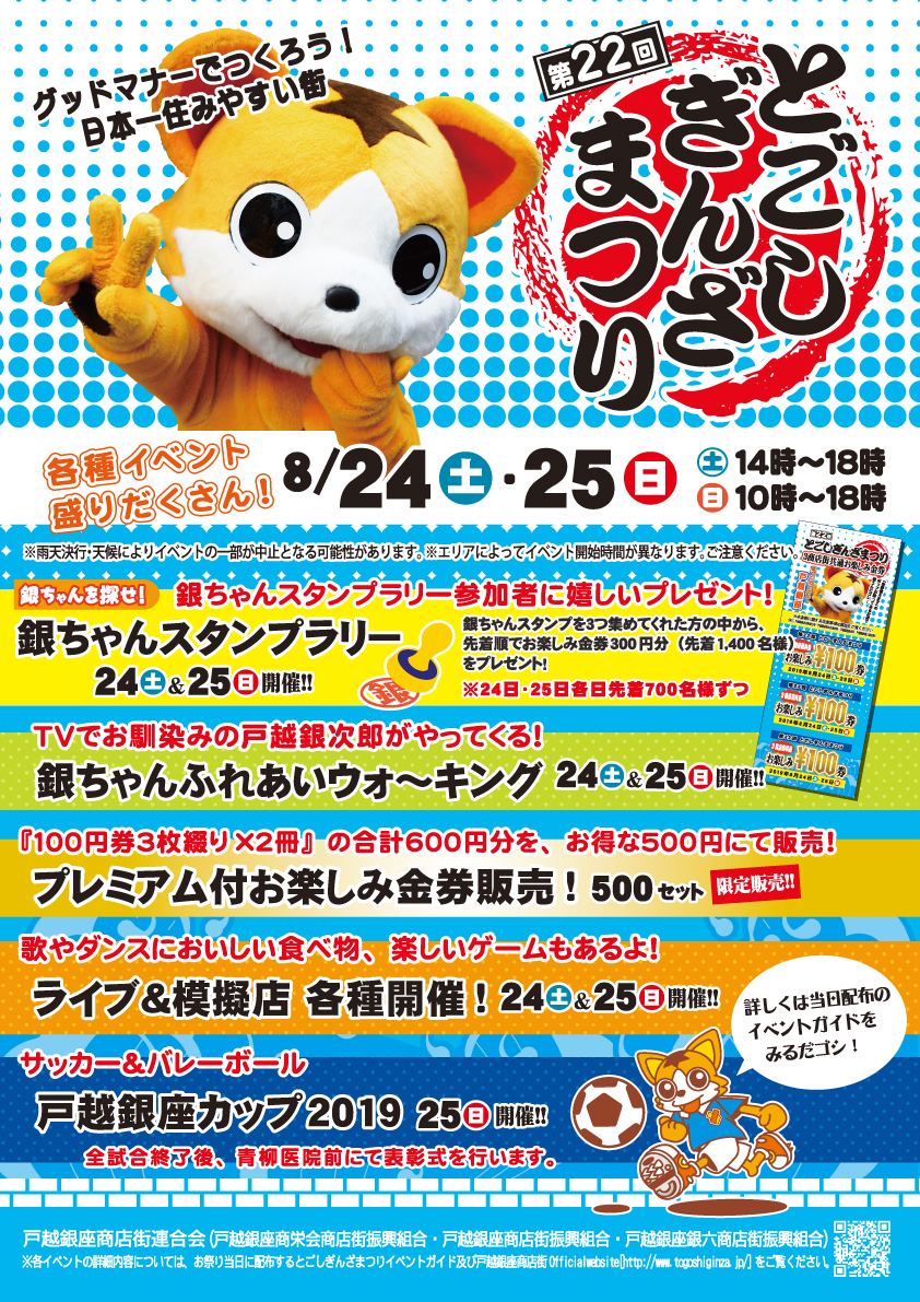 令和元年 8/24(土曜日)・8/25(日曜日)第22回とごしぎんざまつり開催