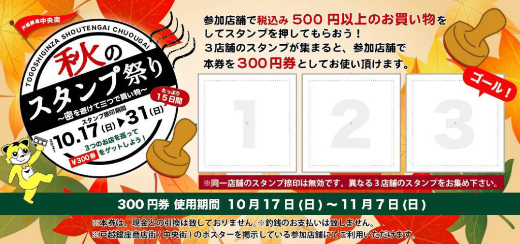 戸越銀座中央街ゾーンにて、秋のスタンプ祭りを開催。