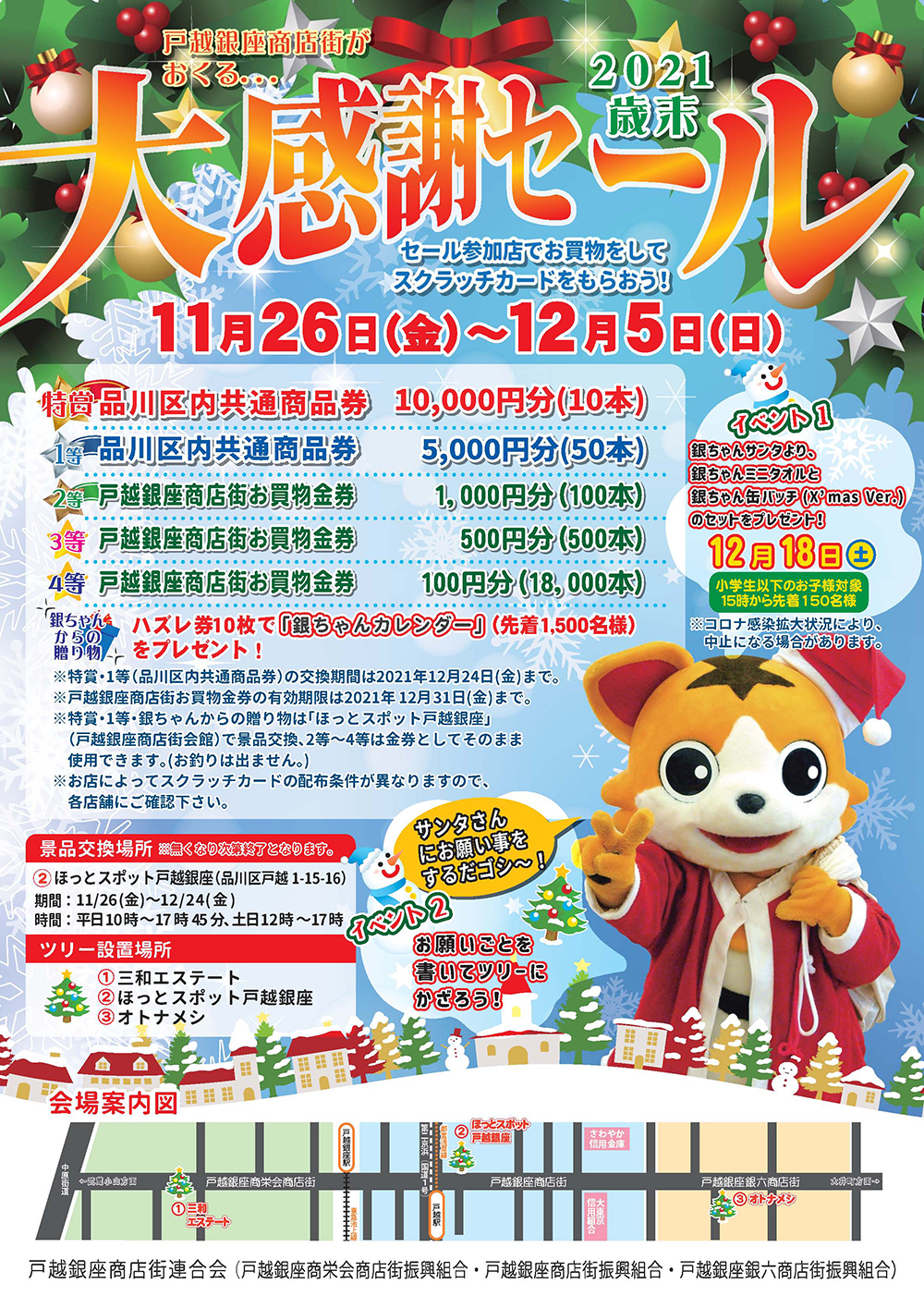 また、商店街では3箇所にクリスマスツリーを設置します。お願いごとを書いて飾ってもらうイベントも開催しておりますので、ぜひお立ち寄り下さい。