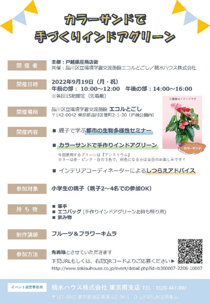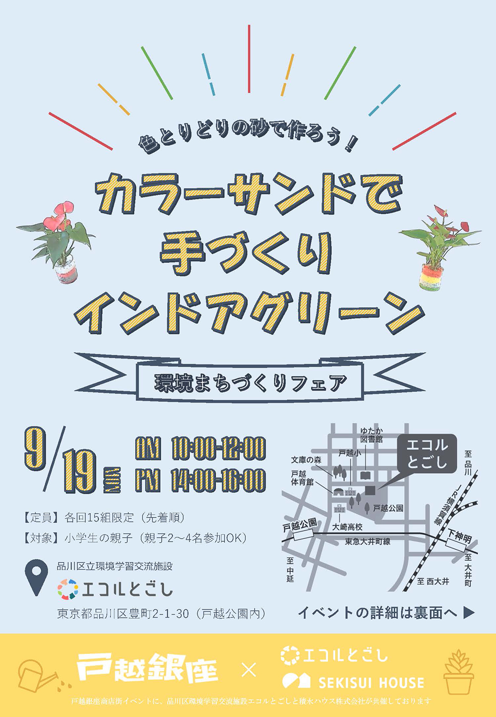 令和4年9月19日(月)に、戸越銀座商店街の近く、戸越公園内にオープンした、品川区環境学習施設エコル戸越にて「環境まちづくりフェア」を開催します。