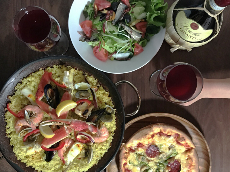 本日のランチ♪ ・ベーコンとキャベツのペペロンチーノ ・やさいのピザ